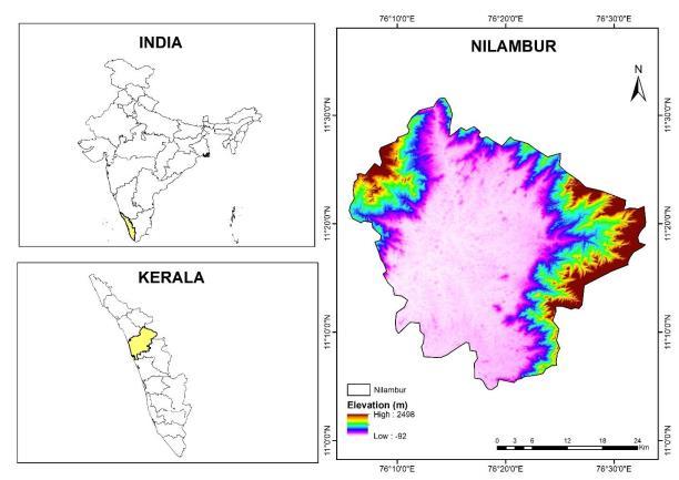 Nilamburisamajortown,amunicipalityandatalukofthe Malappuram district of Kerala. Nilambur Town situated towardstheeasternboundaryofMalappuramDistrict,within 11°00′−11°30′��latitudesand76°10′−76°30′��longitudes and,isboundedbyChaliyaraandChungatharapanchayaths in the North and Karulai panchayath in the East, Amrambalam and Wandoor panchayats in the South, and