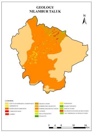 Geologyistakenasaninfluencingfactorforthisstudyasthe capacityofthegroundtoabsorbwaterisdirectlyrelatedto theunderlyinggeology.ThegeologyofNilamburtalukwas extracted from the Geographical Survey of India. Such geologicalterrainswillthusbesusceptibletorapidrun-off, enhancing the potential for serious flooding downstream duringhighrainfallevents