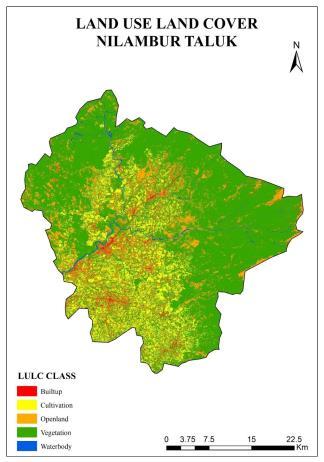 A landusemapshowsthe various types andintensitiesof differentland uses ina particulararea.Landuse influence infiltration rate. In this study area, the land use classes identified were vegetation, built-up area, water body, cultivationandopenland.Agriculturalareafavorsmedium infiltrationwhereasbuilt-upareasupportsoverflowofwater