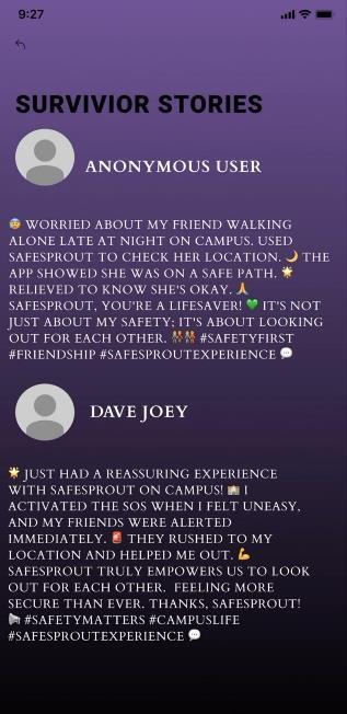This feature allows survivors to share their experiences andoffersupportandencouragementtoothers whohave facedsimilarsituations.