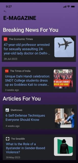 Safesprout can include a digital magazine featuring articles, news, and stories related to women's safety, empowerment,andcampuslife.