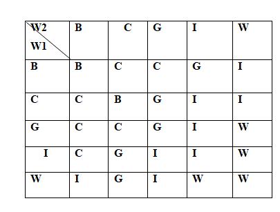 Pixelvaluesintheincominggrayscalephotosrangefrom0255(256grayvalues).Thesegrayvaluesareseparatedinto thefollowingfivemembershipfunctions'fuzzyset(B,C,G,I, andW):Cstandsforcharcoal,Gforgrey,Iforivory,andW for white. The generated image has 256 gray levels and makes use of the same fuzzy set. Because it has less computing cost than other membership functions like Gaussian,Trapezoidal,etc.,thetrianglemembershipfunction isusedinthecreationoftheFIS.