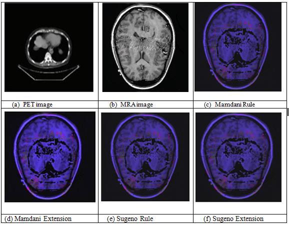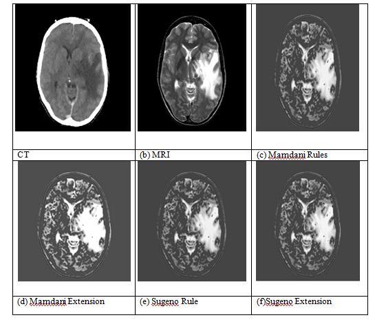 Thissectionprovidesinsightsonhowsimulationsutilizing methodslikeMamdaniandSugenoareperformedonwhole different sets of medical pictures. Two distinct modality pictures are used during the experiments. There are six distinctinputsets,withtwodistinctbrainpicturesineach set. Fusion is carried out on every set using Sugeno rules, Sugenoextension,Mamdanirules,andMamdanirules.Three distinctsetsofCTandMRIpictures,anMRandMRAset,a PETandMRAset,andanXRAYandVAsetareamongthesix setsofinputimages.Whenthetwophotosarecombinedinto one, a wealth of informationis provided thataids in more accurate diagnosis. Every image has the same 256 by 256