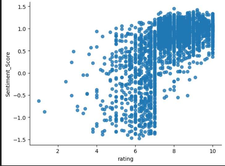 Negative Correlation (-1): Higher sentiment scores are associatedwithlowerratings.Thiscouldindicatepotential inconsistenciesorbiasesinthedataorthemodel.