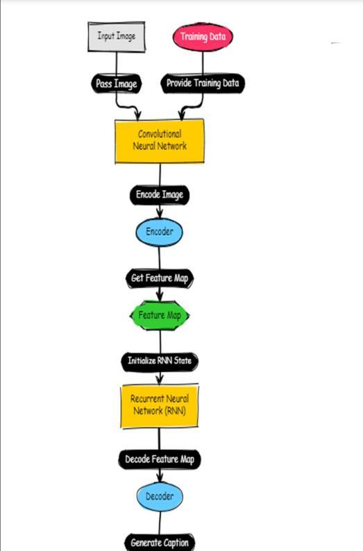 The current systems demonstrate how picture captioning models have developed over time, starting with simple encoder-decoder architectures and moving on to more complex attention processes and transformer-based techniques. Research endeavors are ongoing to tackle problems like producing varied captions, managing uncommon ideas, and enhancing the comprehensibility of producedcontent.Byaddressingcertainshortcomingsinthe currentsystemsorinvestigatingnoveldesigns,thestudent projectmightaddtothisenvironment.ThesuggestedImage CaptionGeneratorsystemisacreativedevelopmentinthe field,enhancingtheadvantagesofcurrentmodelsandadding newcapabilitiestosolvecertainproblems.Thefollowingisa summary of the main elements and attributes of the suggestedsystem:EnhancedAttentionprocesses:Toenhance the model's capacity to concentrate on pertinent image regions during caption production, the suggested method integrates sophisticated attention processes. In order to capture more complex interactions between visual and textual features, experiments are being conducted with variationsofattentionprocesses,suchasself-attentionand multi head attention. Multimodal Fusion Strategies: The suggestedsysteminvestigatesmultimodalfusionstrategies toimprovetheintegrationoftextualandvisualinformation. Themodellooksintomethodssuchascross-modalattention, earlyfusion,andlatefusioninanattempttodevelopamore sophisticated understanding of the connections between imagesandcaptions.Fine-tuningwithContrastiveLearning: Thesuggestedapproachinvestigatespretrainingonsizable datasetswithacontrastivelossfunction,takingadvantageof contrastive learning's advantages. Context-Aware Caption Generation:Usingcontextualdatatoenhancethecaptioning processisthemaingoalofthesuggestedsystem.Throughthe examinationofcontextualcluespresentinthephotosandthe generation of a word sequence, the model endeavors to generatecaptionsthatarebothcontextuallyconsistentand descriptive. Managing unusual Concepts and Biases: The suggestedapproachincludestechniquestomanageunusual concepts in images and reduce biases in training data, addressingshortcomingsincurrentsystems.Moreinclusive andobjectivecaptionscanbeproducedbyutilizingstrategies like data augmentation, domain adaptation, and bias correction. Enhancing User Feedback through Interactive Learning: The suggested system investigates interactive learningstrategies,enablingusercommentsoncaptionsthat are generated. The model is trained using user feedback, whichallowsittoadjustandgetbetterbasedonactualuser interactions. Comprehensive Evaluation measures: The
