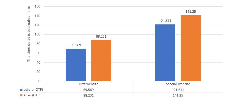 The proposed method added new symbols to the session thatpreventedtheattackerfromformingtheaccessurl.On theotherhand,thenewmethodcausedatimedelayinthe operationoftheprotocolduetothetimeaddedtoformand authenticatethesymbols.Figure(10)showstheresultsof the time delay that occurred after adding the proposed methodonthefirsttwosites.Itisaready-madeMVCmodel provided by Microsoft and runs on its ASP.NET Core platform.Thesecondisafilemanagementsystemthatwe createdusingthesameplatform.