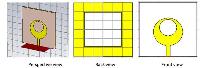 Here, the antenna is printed on a FR4 (lossy) substrate with a substrate thickness of 1.4 mm and a relative permittivity of 4.4. The radius of the circular patch is chosentobe7.62mm.Thegroundplane,whichisprinted on the substrate's bottom side, has a size of 30 mm by 30 mm. To improve the performance of the suggested antenna, a square slot is cut from the ground plane and a circularslotiscutfromthecircularpatch.Thesquarehole is19mmby19mm,whilethecircularslothasaradiusof 4.5 mm. For the circular patch to accomplish the impedance matching 50�� between the patch antenna and the transmission line, a microstrip feed line measuring 6mm by 2mm is employed. Table displays the specific dimensionsoftheproposedantenna.