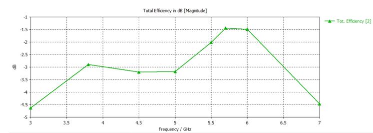 Chart-7: displaysthesuggestedantenna'soverall efficiencyvs.frequencycurve.