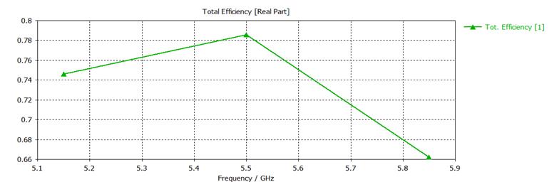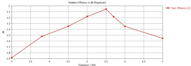 band(5.13GHz-5.83GHz),withamaximumvalueofabout 79%attheresonancefrequencyof5.5GHz.