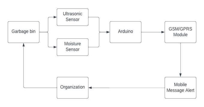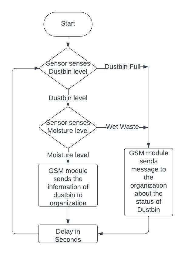 The designated contact numbers registered at Waste Management Centers (WMCs) will receive real-time SMS notificationsviatheGSMmodule,displayingthefilllevelsof individualgarbagebinsontheirphonescreens.Oftentimes, even when a dustbin isn't fully occupied, it may emit unpleasantodorsofwetwaste,leadingtounpleasantsmells permeating the locality or city. To address this issue, a moisturesensorisinstalledwithinthedustbintodetectand mitigatetheaccumulationofwetwaste,therebyhelpingto alleviateodor-relatedconcerns.