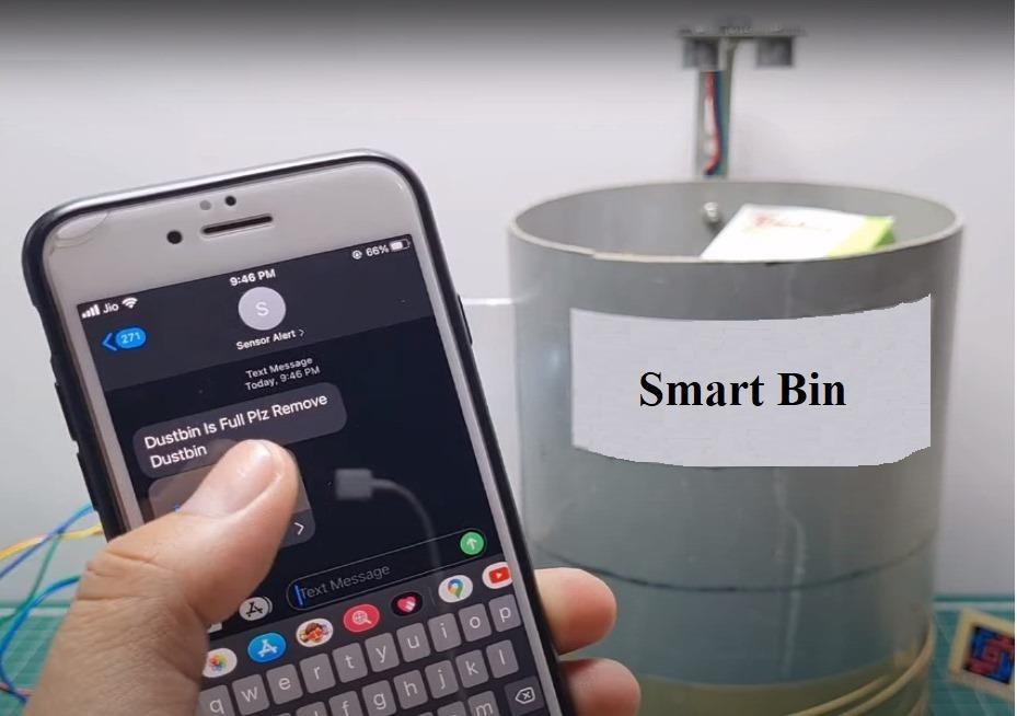 Thisprojectsensesthefilllevelaswellasthemoisturelevel ofthebin,thensendsanalertmessageaboutthefilllevelsof a bin to the registered mobile number. The below image shows the notification of an alert sent to the registered mobilenumberalertingthatDustbinisfull.