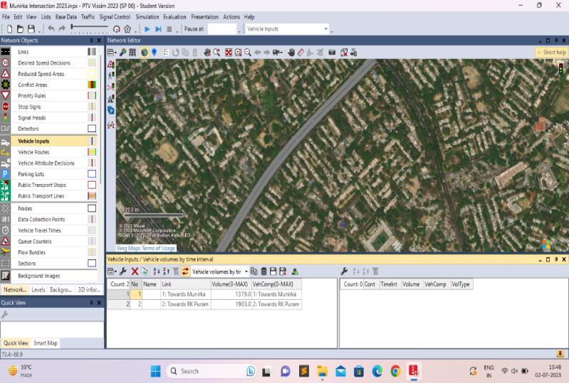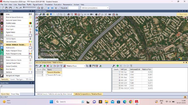 TheroadnetworkoftheMunirkaintersectionwas accurately modelled in PTV Vissim. This involved creating lanes and connecting road segments accordingtotheactuallayoutoftheintersectionin NewDelhi[4],[9],[10]