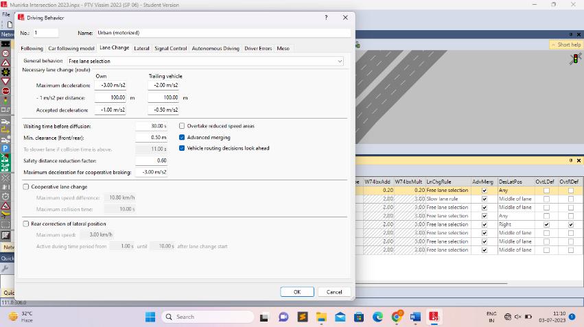 To effectively design traffic flow models and advanced driverassistancesystems,understandingdriverbehaviour inaspecificregioniscrucial[15],[16].Thesetables(Table 1&2)presenttypicalvaluesforvariousdrivingbehaviour parameters in India, including factors like following distances, reaction times, and braking capabilities. The values are further categorized for both minor and major roads[17],[18]