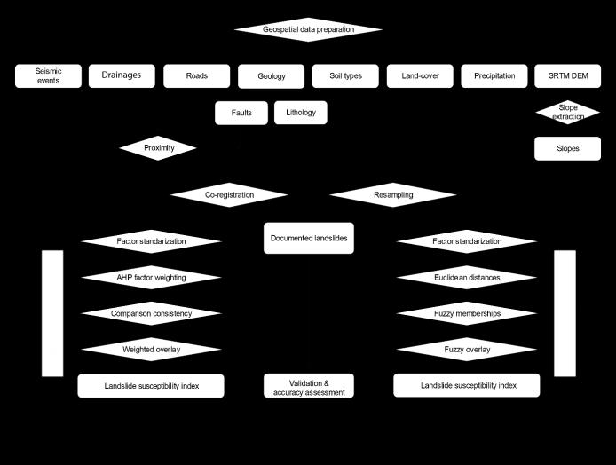 TheflowchartdepictedinFigure2outlinesthekeystepsand methodologies employed in this study, including the applicationofweightedoverlayandfuzzylogicmodels.Due tothecomplexinteractionsamongvariouscausativefactors, no single model can serve as the optimal solution for all landslide assessments. Empirical analysis methods, which examinepastlandslidestopredictfutureoccurrencesunder
