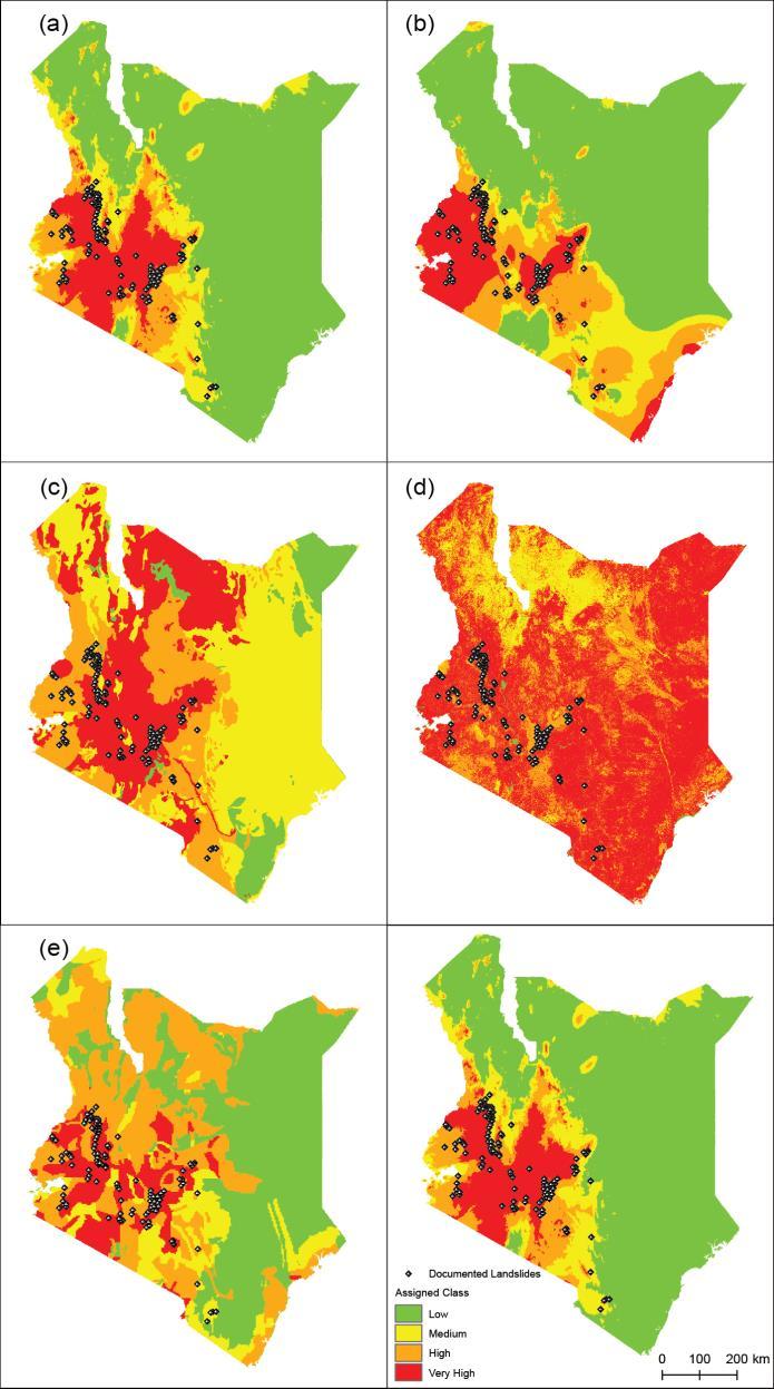 Existingstudieshavehighlightedthesocioeconomicimpacts of landslides in Kenya and identified heavy rainfall in conjunctionwithnaturalgeologicalandgeomorphological conditions as primary causes of slope instability. Human activities, including road construction, excavation, and changesinlanduse,havealsocontributedtoslopefailuresin thecountry.Despitetheseinvestigations,thereisalackof comprehensive publications assessing landslide hazards using GIS and remote sensing techniques for the entire country.