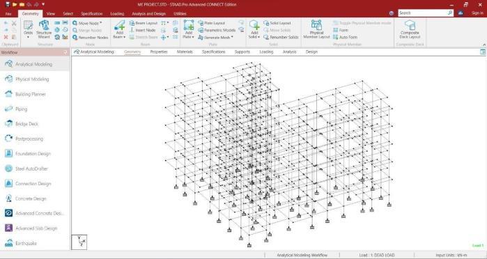 Then, using structural analysis software, a finite element modeliscreatedthatincludesallstructuralelementssuchas beams,columns,slabs,andbraces,withboundaryconditions appliedtosimulatestructuralsupports.