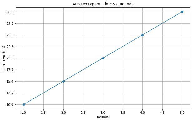 - Decryption rounds are the inverse of encryption rounds and consist of four main operations performed in reverse order: InvShiftRows, InvSubBytes, AddRoundKey, andInvMixColumns.
