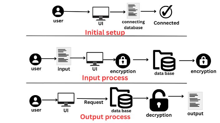 Leveraging a structured form provided by the application, users securely insert data into their chosen table. Prior to storage within the database, data undergoes encryption, safeguarding its confidentiality and integrity against potentialbreaches.