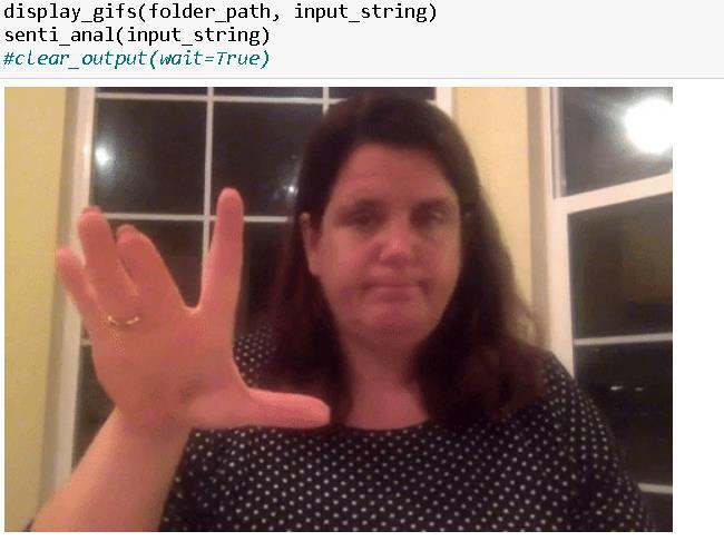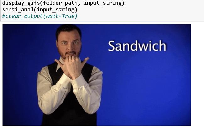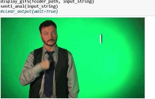 The project was tested with various subsets of data. Initiallythedatasetwasmadeof30words,butforchecking the efficiency and performance of the model it has been splitinto5,10,20and30wordsrespectively.Thesesetsof words were trained on different neural network architecturesnamely LSTM,LSTM+GRU,andGRU.After attentive trial and error method, we identified the architectures yielding the highest accuracies and used them to generate sentences from the input. These sentences were then transformed into ASL GIFs with the help of IPython libraries. Sentiment analysis was conductedusingtheVADER(ValenceAwareDictionaryfor sEntiment Reasoning) framework to determine the emotional tone of the sentences. The polarity of the sentiments be it positive,negative, or neutral was then determined, offering valuable insights into the conveyed messages.