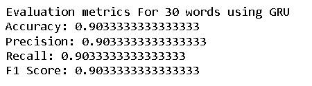 Fig -11:Evaluationmetricsfor30wordsusingGRU