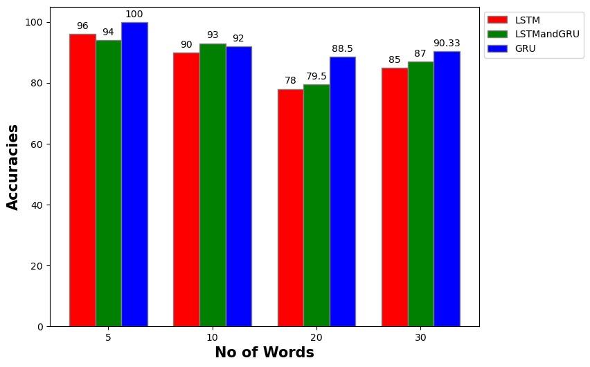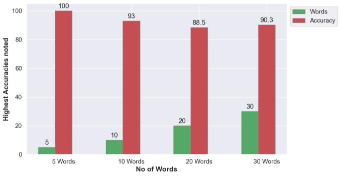 Fig -10: Bar-graphrepresentinghowtheaccuracies decreasewithanincreaseinthenumberofwords
