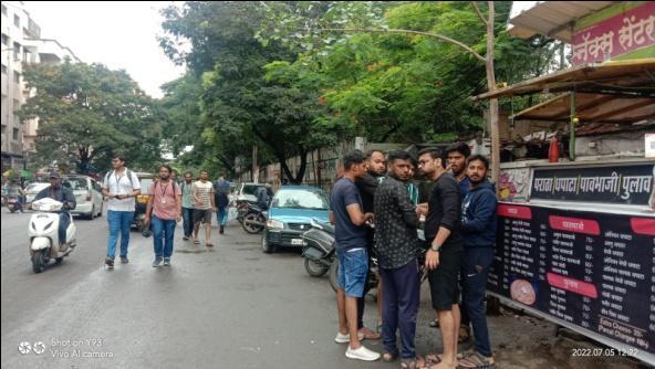 Eateries encroach the pedestrian walkways and replace theassignedusageofthewalkway.Thisencroachmentcan beintermsofseatingareaoftheeateryoutletsinfrontof the eateries, students smoking area, dumped trash bins, parked vehicles, human traffic, etc. There are no fixed timingsforsuchtraffic,rathera nuisanceatall times.The eateriesremainopenlateinthenightcreatingnoisedueto functioning of the eatery and by the gathered students at theeatery.Thistypeofdevelopmentaffectstheresidential neighborhood because the typology of activities and the usersarenotthesame.
