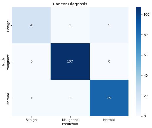 The VGG- 16 model's performance on the IQ- OTH/ NCCD lung cancer dataset is exhaustively presented through a collection of visual aids. These include graphs and charts depicting accuracy and loss metrics over epochs for both trainingandtestingdatasets.Likewise,confusionmatrices are generated to illustrate the classification performance of the model on both training and testing data. This detailed representation offers precious perceptivity into the behavior and efficacy of the VGG- 16 model on the specifieddataset.