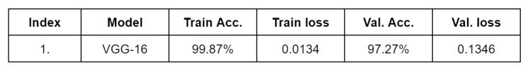 Thenetwork'sstraightforwarddesign,characterizedbyits deep stack of convolutional layers with small filter sizes, facilitates powerful feature extraction, allowing it to capture intricate patterns in images effectively. Despite being surpassed by more complex architectures in recent years, VGG-16 remains a benchmark model and a cornerstone in the development of deep learning techniquesforcomputervisiontasks.