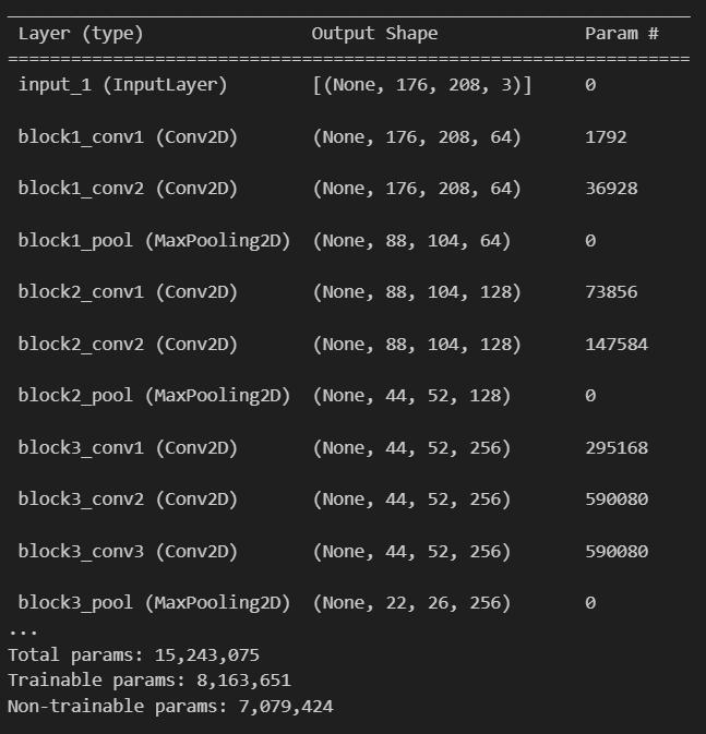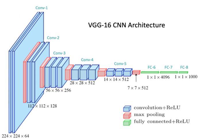 The VGG-16 has a total of layers out of which 13 are convolutional layers and remaining 3 layers are fully connected layers. The 13 convolutional layers are again divided into 5 blocks out of which first 2 blocks has two 3x3convolutional layersandremainingthreeblockshave three 3x3 convolutional layers, each convolution is followed Relu activation function to introduce non linearity and also after each convolution block max pooling is introduced to reduce the dimensions of the image. After the convolutional blocks it is introduced to fullyconnectedlayersalsocalledasthelinearlayerwhich isusedtoflattentheimagethatisitisusedtoclassifythe given image into a label.At last an softmax activation functionisusedtoproducetheclassprobabilities.