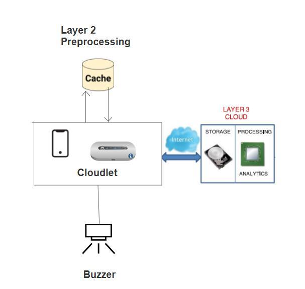 Toaddressthisissue,weproposeimplementingacachefor eachhealthparameterinthecloudlet.Thisapproachwould ensurethatonlysignificant spikesandgradual changesin readings are captured and transmitted to the Third Layer (Cloud).Instanceswheretheheartrateabruptlyincreases from90to100ordropsto80,orwhenbodytemperature shifts from 36°C to 39°C, would be selectively sent to the ThirdLayerforpredictionandprocessing.Thismodification aims to reduce computational overhead both at the cloud andthecloudlet,asplaintextdataneednotbeencryptedand transmitted unnecessarily. Additionally, we suggest enhancingthesystembyconnectingthecloudlettoabuzzer. Thisfeaturewouldenablethesystemtogenerateanalertin caseswheresensorreadingsfallbelowaminimumthreshold orsurpassamaximumthreshold.Thebuzzer’snoisecould serveasapromptformedicalstaffpresent,allowingthemto providepersonalizedassistancetothepatient.