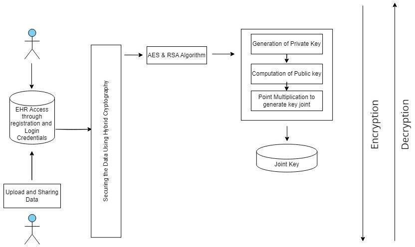 The main steps we used in the project is to focused on establishingthefoundationalcomponentsfordatasecurity and user access control in the EHR system. The hybrid cryptography approach, along with the signup and login pagesfordoctors,willformthebasisforarobustandsecure EHRsystem.Astheprojectprogresses,furtherfeaturesand security enhancements will be implemented to ensure comprehensive data protection and a seamless user experience and Doctor can see the patient detail and go through the patient report and suggest medicine to the patient according to their report. Regular monitoring and updatesareessentialformaintainingtheeffectivenessofthe securitymeasuresovertime