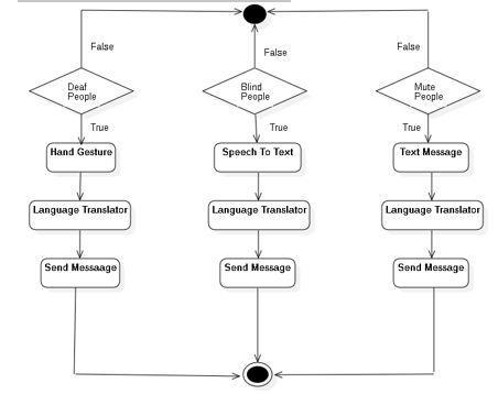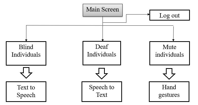 The system architecture for communication among blind, mute,anddeafindividualsutilizesamulti-modalapproach, integrating diverse communication methods and technologies.Thisframeworkaddressesuniquechallenges faced by these individuals, fostering inclusivity and accessibilityinsocialinteractions.
