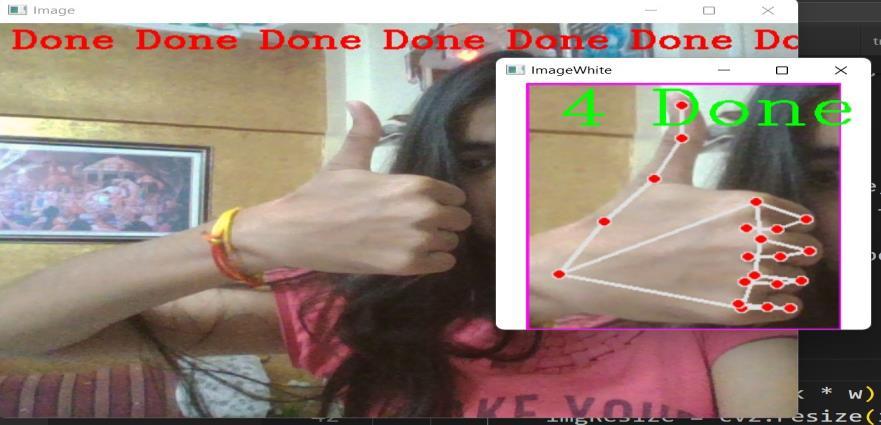 Fig 5. Shows the result of word detected “Done” of Hand Gesture.