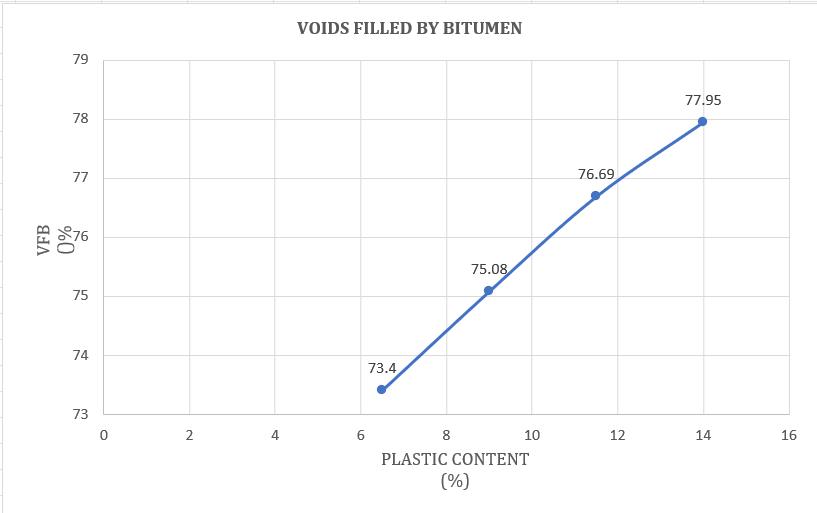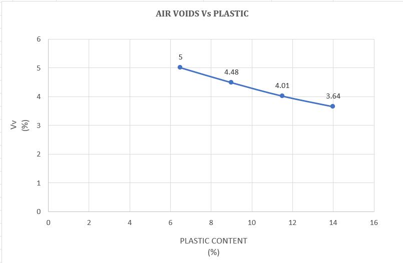 As the HDPE plastic content (%) in the blend increases,voidsinmineralaggregates(VMA), volumeofairvoids(Vv)decreasesasaresult, strengthanddurabilityofbitumenplasticblend increase.