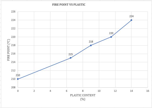 Chart -14:VariationofFirePointwithHDPEPlastic modifiedBitumen(%)