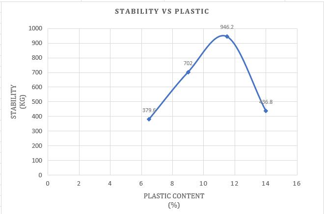 Incontrast,thestabilityof HDPEplastic-modified bitumen at optimum plastic content is 946.2 Kg, makingitsuitableforheavyandveryheavytraffic.