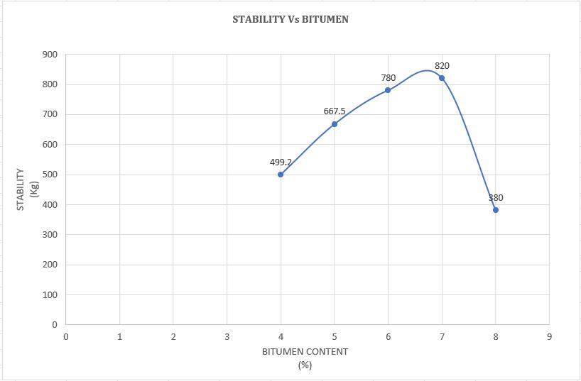 The stability value of plain bitumen at optimum content is 820 Kg, suitable for light and medium trafficasperMORTHspecifications.