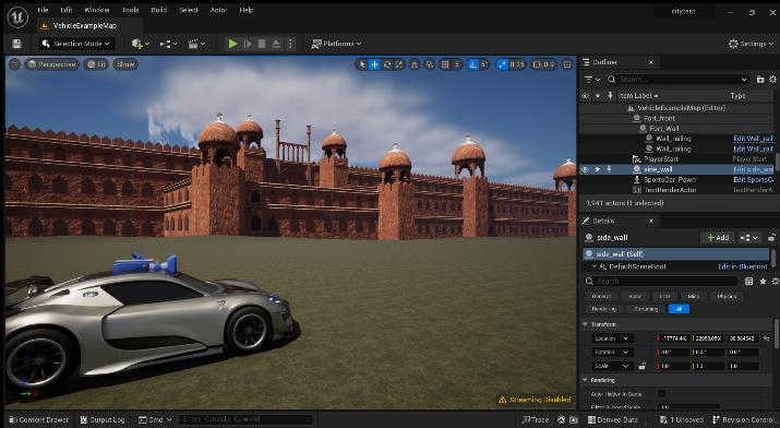 Created 3D model of Indian architecture reminiscent of the iconic Red Fort (for Delhi Map) using Blender and UnrealEngine5.Initially,wegatheredreferenceimagesof the Red Fort from various angles to understand its intricate details using Google Earth. Then we set the scenes in Blender, we ensured proper scales and units.