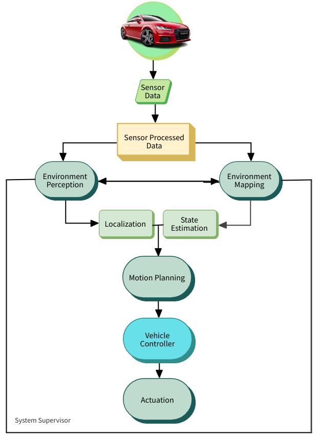 paths based on the processed sensor data and environmental information. Subsequently, the resulting plans are transmitted to the vehicle controller module at thefifthlevel.Here,control commandsaretranslatedinto physical actions such as steering, acceleration, and braking. Throughout the entire hierarchical structure, from level two to level six, all processes are continuously monitored and supervised by a dedicated system supervisortoensurethesafeandefficientoperationofthe autonomousvehiclesystem.