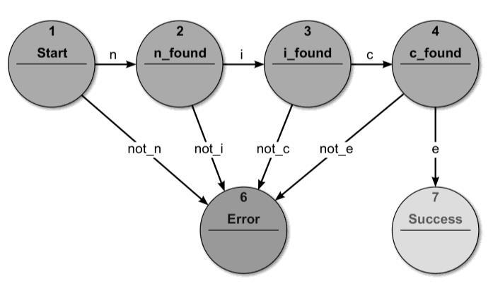 Figure3.3(A)FSM(ParsingtheString“nice”)