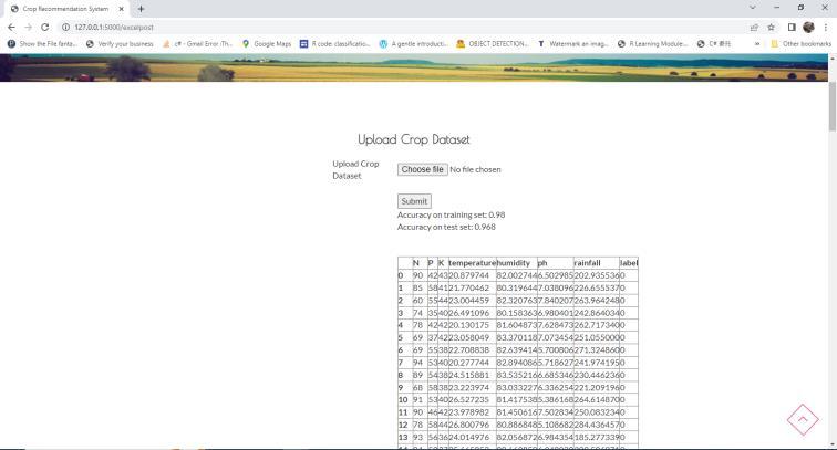 Inthismodel,wecanexportthecropyielddatasetinCSV fileformat.andstoretheinformationinadatabaseforfuture reference.Datasetsincludetemperature,precipitation,pH, nitrogen,phosphorusandpotassiumvalues.Theresultsare retrievedfromtheKagglewebsiteandtheresultsarestored as numerical values.andupload soil data in image format fromKAGGLE