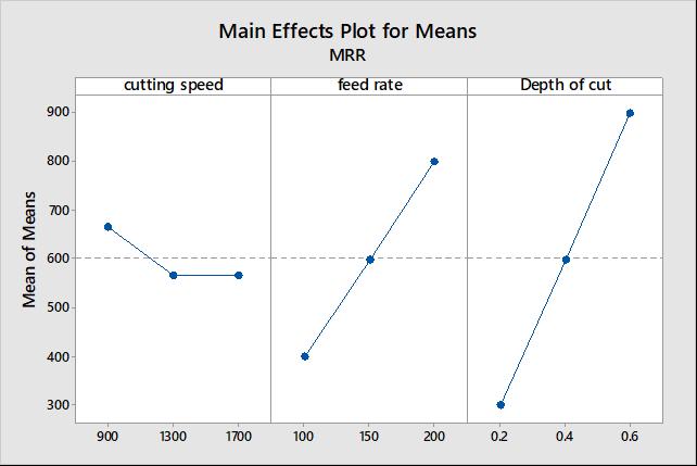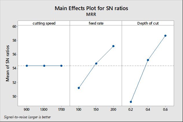 Inanymachiningoperation,materialremovalrateis animportantfactortoenhancetheproductivity.Hencethe characteristics for Material Removal Rate is âlarger the betterâ.Eqn(1)wasusedtocalculatetheMRR.