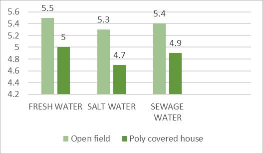 Fig-11 and Fig-12: Comparison of Fresh water, Salt water andSewagewaterinPolycoveredhousecondition.