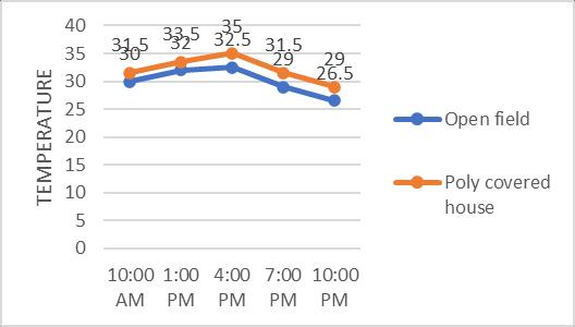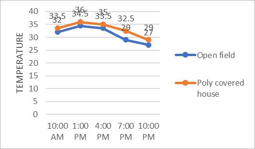 Thechart-6showsthetemperaturevariationwithrespectto timeinaparticularday,inbothpolycoveredhouseandopen field.