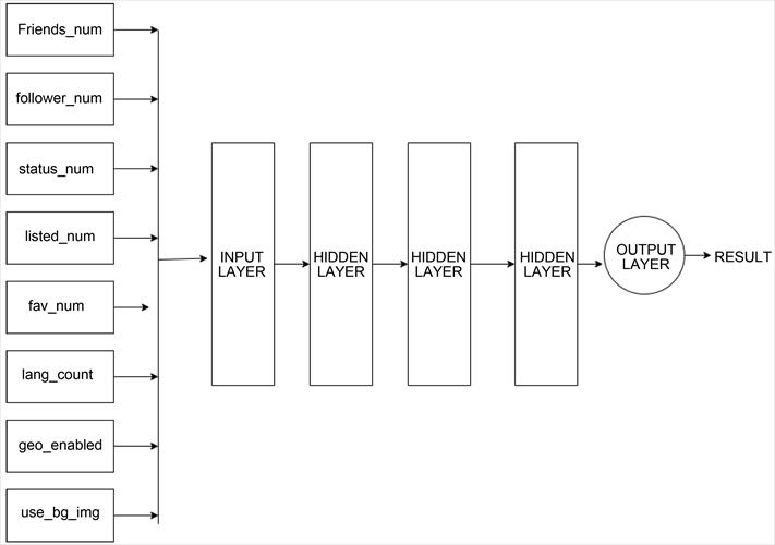 modelwasoptimizedusingtheAdamoptimizerandbinary merge loss function. Thisarchitectureisanexample of an ANN.Thesigmoidfunctionoutputsavaluebetween0and1, indicatingwhetheragivenprofileisrealorfakebasedonits prediction.