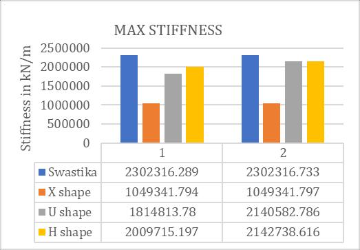 Amongallthemodels,exceptfortheXshape,weobserved that they exhibited satisfactory rigidity/stiffness. The X shapehadlessstiffnessbecauseofitspositioninginbothX andYdirections.Interestingly,wenoticedthatthestiffness washighestatthefirststoreyinallthemodels.Thistellsus thathowthestructureisshapedandpositionedaffectshow stiff it is, and the first storey is particularly important for stiffness