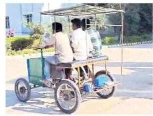 Everythingcanbereusednowadays. Soinarealsensewe can say that nothing is a real waste. Everything has their value in this world. In this work we used waste material hollowironpipesdesignofchassis. Doublepedaloperated car four seated capacity while peddling operation batter charged.Batterycapacity(18Amperehour,Watts –1000, Volts–48).