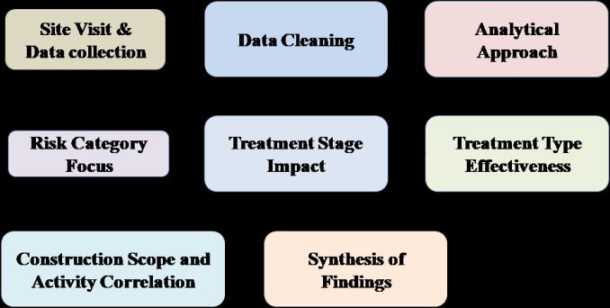 iii. Analytical Approach: During the "Analytical Approach" phase of our study, we undertake the crucialtaskofprocessingandinterpretingthedata gathered to extract meaningful insights. In this phase,weemploystatisticalmethodstoanalyzethe effectiveness of various safety treatments documentedwithinthe'SafetyRiskLibrarydataset'. To gain a comprehensive understanding of the dataset, we first utilize descriptive statistics to summarize the data and determine the basic featuresofthedataset,suchasthedistributionand centraltendenciesofvarioussafetymeasures.We then employ inferential statistics to draw conclusionsabouttheeffectivenessofthesesafety measures. This allows us to go beyond the immediatedatatomakebroaderinferencesabout workersafetypracticesintheconstructionindustry as a whole. Furthermore, we apply comparative statisticaltechniquestoassesstherelativeefficacy ofdifferenttreatmenttypes,including'Eliminate', 'Substitute',and'EngineeringControls',compared tomorereactivemeasuressuchas'Administrative Controls' and 'Personal Protective Equipment'. Additionally, we investigate the timing of safety measureimplementationandanalyzewhetherthe stage at which they are introduced affects their effectiveness.