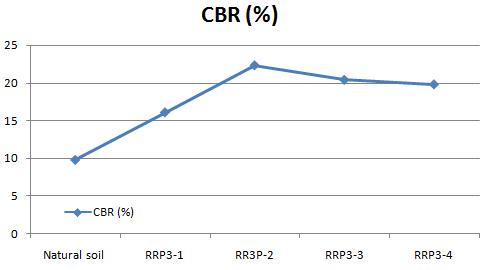 In order to calculate theCalifornia Bearing Ratio for naturalnatural soil and RRP3 samples, CBR tests were conducted and results were shown in the figure4