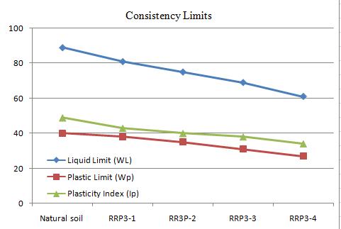 (I) SoilwithPR3showsagradualreductioninthe LiquidLimit,PlasticLimit,andPlasticityIndex